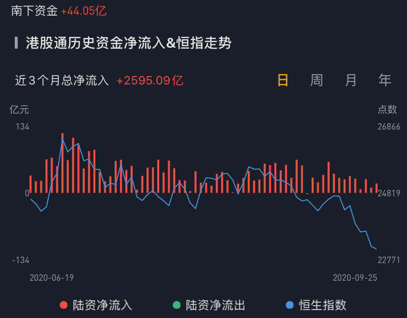 南下资金今日净流入港股44.05亿港元,流入规模有所扩大,内地资金持续涌入港股市场。