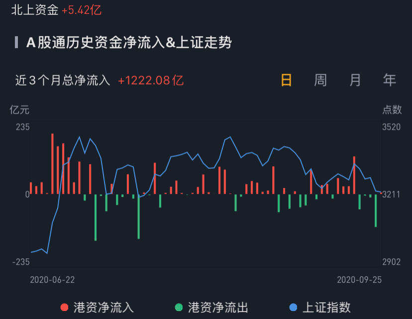 北上资金今日小幅净流入A股5.42亿元,流入意愿整体较为低迷。