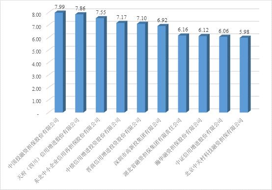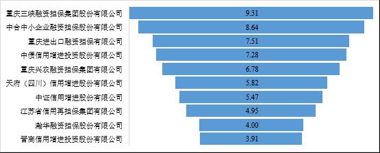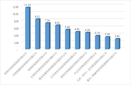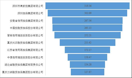 2. 中债信用增进投资股份有限公司与深圳市深担增信融资担保有限公司实收资本一致,并列第10名