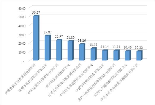图9 2019年担保机构净利润规模排名情况(单位:亿元)