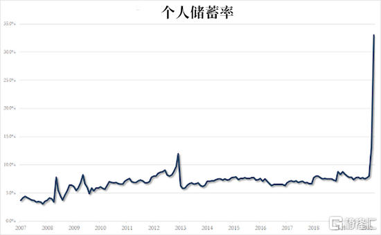 个人收入飙升的原因也很简单,这是因为美国政府释放的大规模财政刺激导致了个人收入激增的幅度为史上之最,这也让美国政府的转移支付达到了个人总收入的30%,为历年最高。