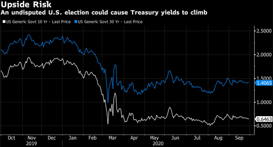 这可能是最被低估的大选风险之一,有可能在大选后几周将10年期美国国债收益率推至1%,达到第一季度以来从未触及的水平。虽然这可能不是许多投资显贵的基本假设情形,但为防万一,有些人正在为之做准备。