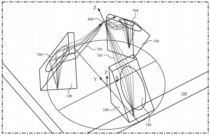 在苹果公司的空气监测方案中,提出使用三个激光光源,和三个全内反射透镜,以及相关的光传感器或光电二极管来接收光信号。激光器发出的光通过透镜,并向接收传感器反射,光线向传感器本身折射。苹果表示,堆栈可以由传感器电路组成,在底层,由发射器和检测器叠加,然后是顶部的透镜。这将意味着光传感器和光源将处于同一位置,因此光线将被反弹回原点。这样做可以让苹果省去需要确定光线的目的点,并将检测传感器放置在离发射器较远的地方,节省设计空间。苹果还建议使用VCSELs,它在iPhone的TrueDepth相机阵列等硬件中使用。
