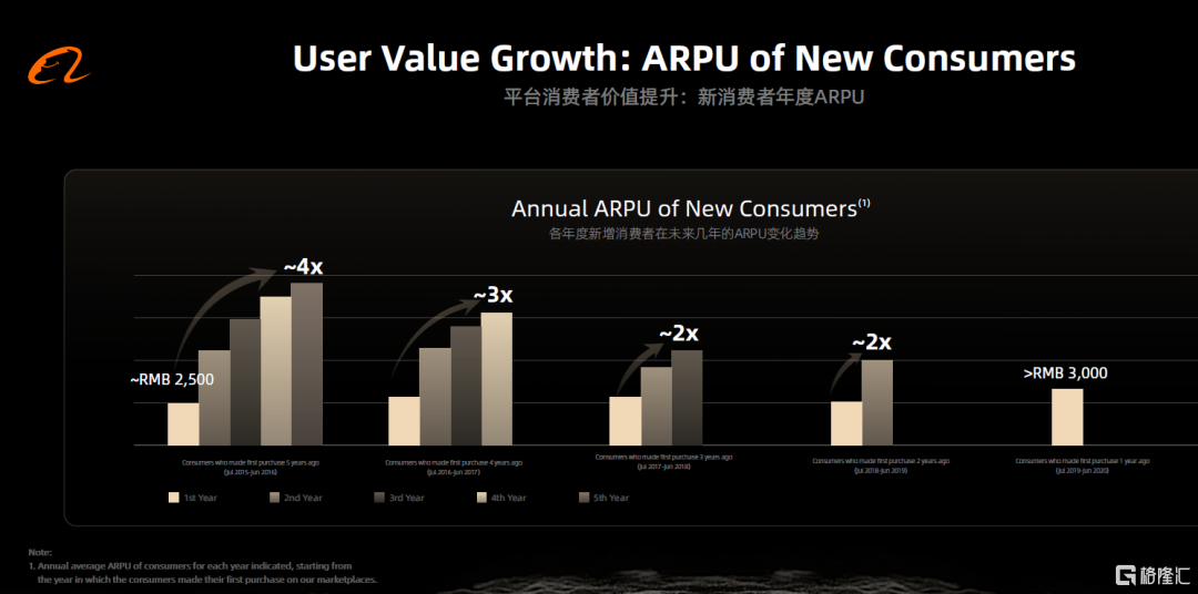 从这一组数据可以看出,阿里平台的价值,是如何一步步体现在用户的交易数据之中的。