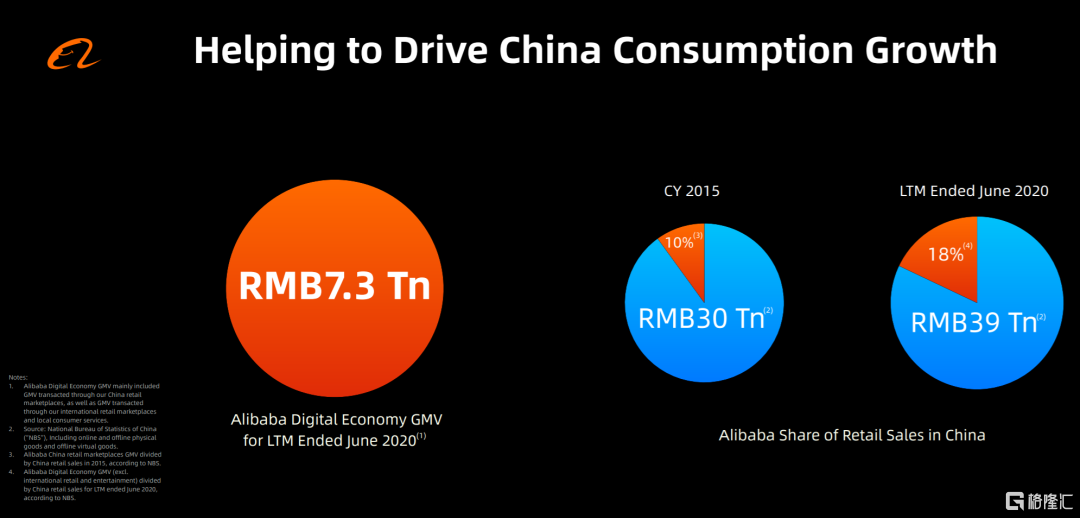 这个数字是一个什么概念?武卫将这一数字放到中国社会消费品零售总额中:2015年,阿里的占比就达到了10%;如今,即便全社会的消费总额盘子在变大,阿里的占比还是实质性地扩大到了18%。
