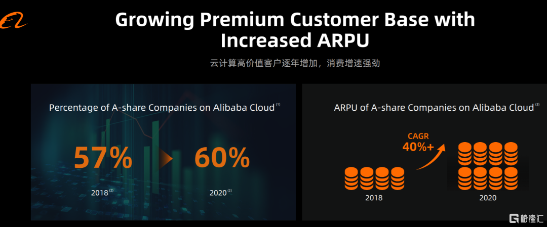 用户付费也在同步提升。目前,阿里云有300多万付费用户,云上主要客户消费也在逐年增加,从2018年开始,每客户的平均收入(ARPU)年复合增长率达到了40%。
