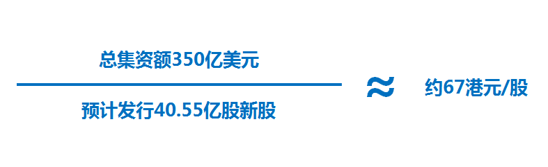 根据蚂蚁集团招股书,公司总股本270.3亿股,本次上市发行15%的新股,也就是约40.55亿股,根据计划集资额350亿美元计算,预计本次发行新股每股股价约67港元/股。