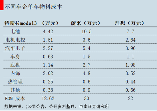 比如虽然同样和特斯拉一样主攻高端车,但蔚来物料和电池的成本更高。