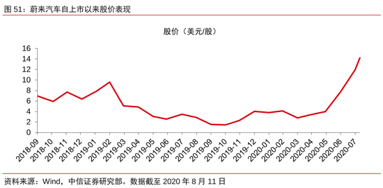 不仅如此蔚来还赶上了好时机。今年1月,特斯拉市值首次触及1000亿美元,疫情中表现坚挺,多重利好下,到年中市值更是像脱离地心引力般逼近4000亿美金大关。作为新能源的领头羊,特斯拉的表现也让投资者和消费者重拾了行业信心,一人得道,大家跟着享福。