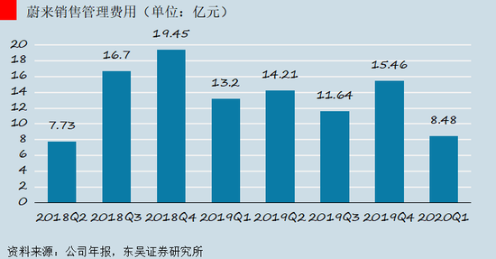第二大出血口为运营费,蔚来想要通过用户运营、结合线下体验店和线上App打造蔚来生态,聚集一大批核心用户,这导致销售管理费用持续增加。2016至2018年一共花了88.31亿元。