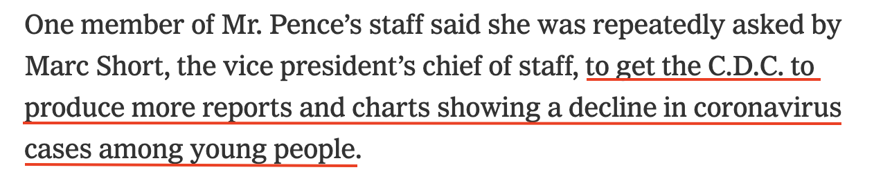 白宫官员还试图绕过疾控中心,寻找其他暗示疫情正在减弱的数据,并向美国民众表明新冠病毒对儿童几乎没有威胁。