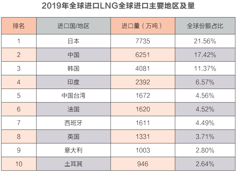 中日韩是全球最重要的天然气进口地区,2019年LNG进口量占全球LNG进口总量50%。日本是亚太地区最早采购天然气的国家。1967年日本东京燃气与东京电力与美国的马拉松石油公司(MarathonOil)与当时的菲利普斯石油公司(PhillipsPetroleum)签订了一份为期15年的LNG购销合同,主要用来替代燃料油发电,以减少污染。