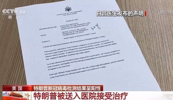白宫总统医生当天说,特朗普虽然仍感疲惫但精神状态良好;梅拉尼娅状况良好,有轻度咳嗽和头疼症状。美国媒体援引消息人士的话报道,特朗普自2日早晨起持续发烧。特朗普当天在社交媒体上发布稍早前在白宫录制的视频。在视频中,特朗普称将前往军事医疗中心以确保一切顺利,他和梅拉尼娅感觉良好。