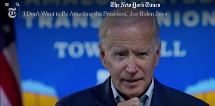 “从本质上就不同,”拜登回答说。《纽约时报》称,本想批评特朗普的拜登在此时变得有点儿“为难”。