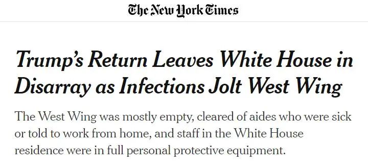 《纽约时报》:感染事件震动白宫西翼,特朗普的回归使白宫陷入混乱