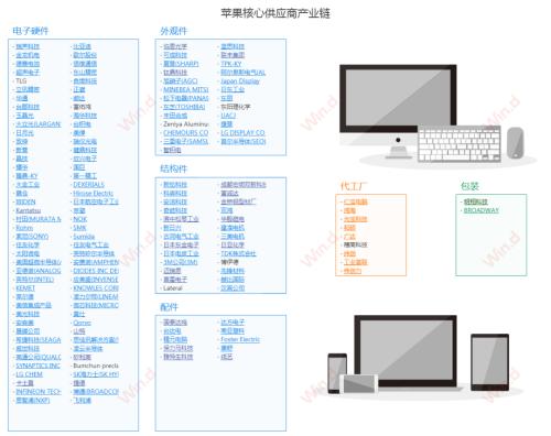 据Wind产业链平台,苹果核心供应商产业链如下: