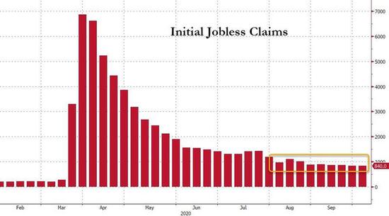 同时,截至9月26日当周,失业金的续请人数减少100万,总数至1097.6万人,是3月以来最低,好于市场预期的1140万人,前值为 1176.7万人。