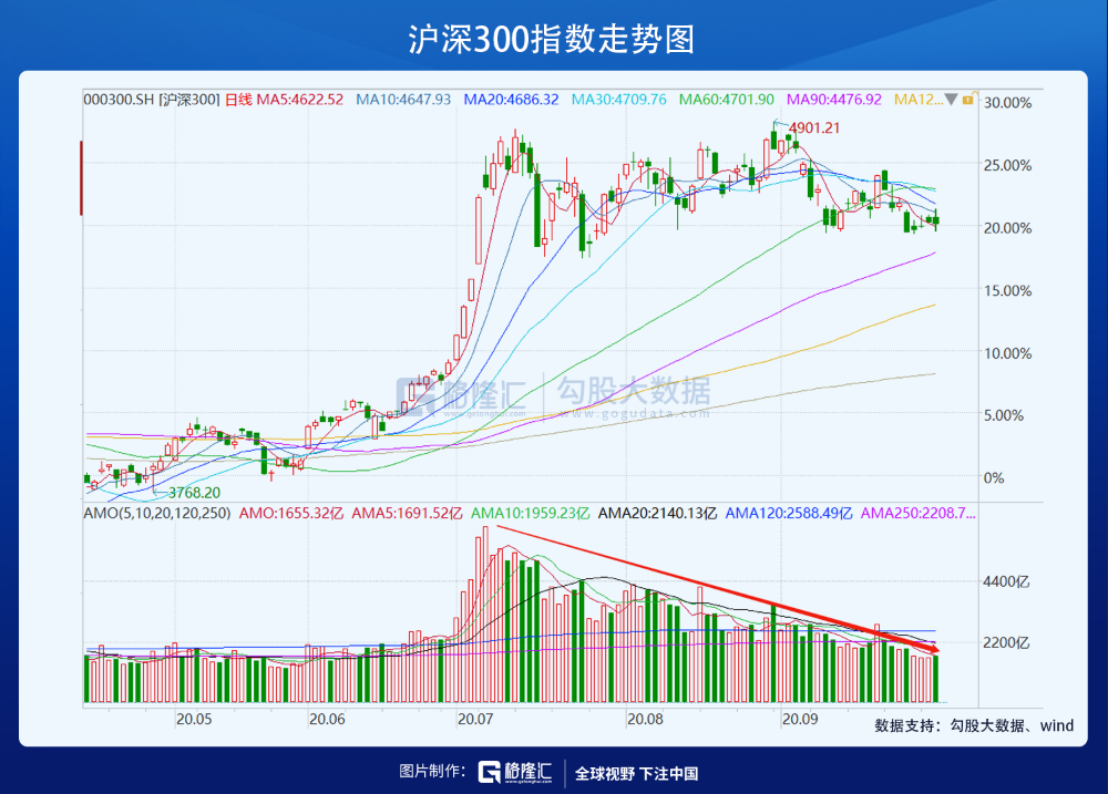 沪深300的量在节前也进一步缩量了,沪深300节前最低的一天只有1600亿,这距7月的高峰6350亿萎缩了75%。这意味着什么,我之前在《分道扬镳》中说过,现在只待验证了。