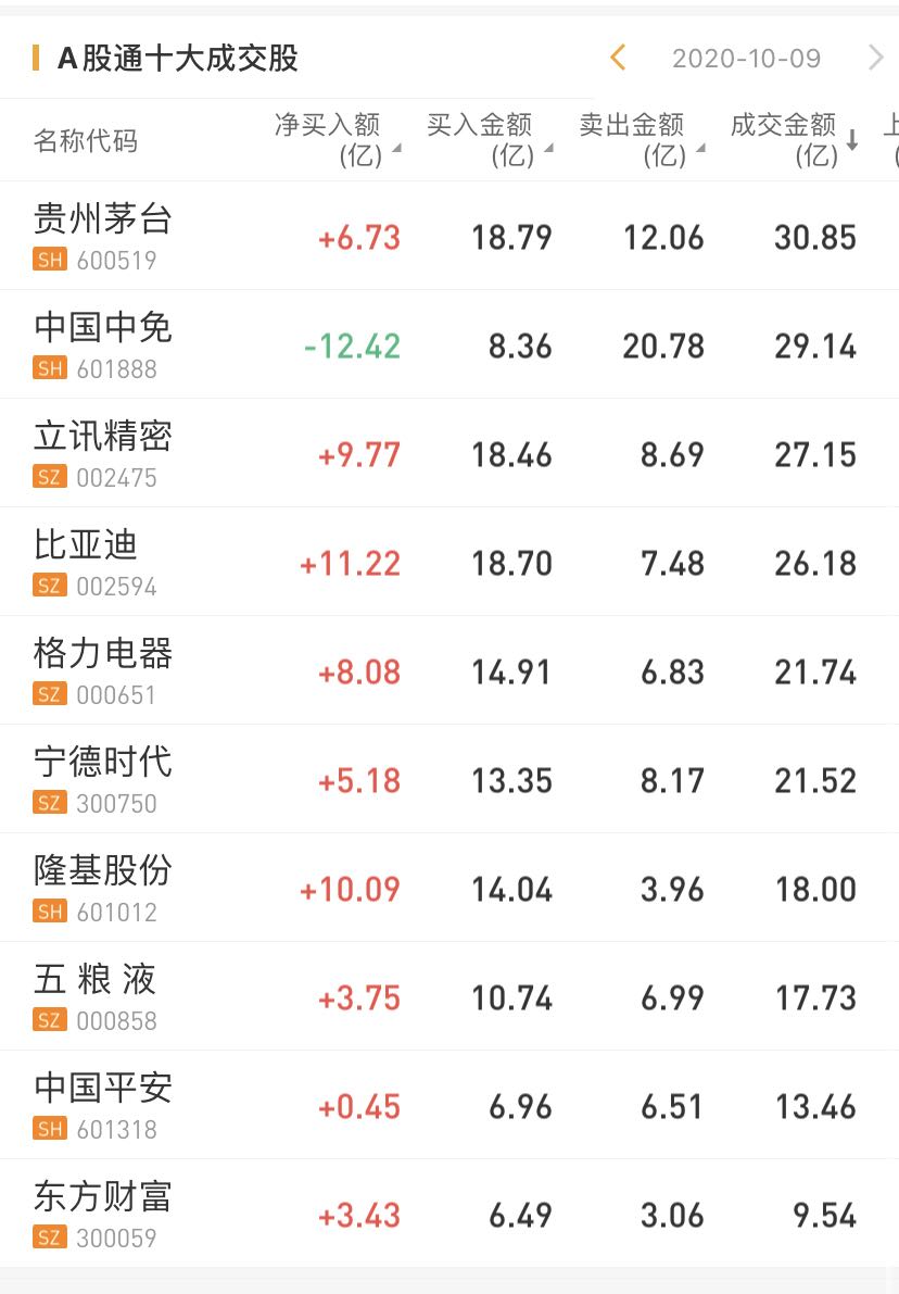 北上资金今日净买入贵州茅台6.73亿元,净买入比亚迪11.22亿元,净买入隆基股份10.09亿元;净卖出中国中免12.42亿元。