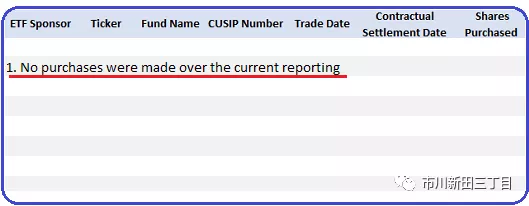 美联储上一次买入美国公司债交易所交易基金还是在7月23日,当日买入了9只交易所交易基金的份额,总额为230万美元。在此之后,再也没买过。在EXCEL附表中本应显示当月买入交易所交易基金金额的地方,已是连续第二个月显示这么一行字:“本报告期内无买入。”,见下表中红字标识。