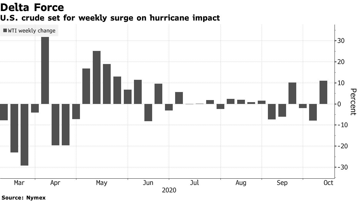 CMC Markets首席市场策略师迈克尔•麦卡锡(Michael McCarthy)表示,墨西哥湾在飓风德尔塔的影响下停产,是油价上涨的原因之一。投资者最近对部分欧佩克国家不遵守减产纪律的担忧,似乎也已经被飓风对供应的打击所抵消。