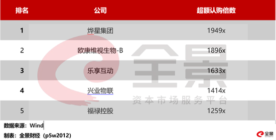 2020年前三季度,众多明星企业、独角兽公司争相登陆港股市场,惹得投资者打新热情高涨,超额认购超千倍的盛况屡见不鲜,其中,烨星集团、欧康维视生物-B、乐享互动、兴业物联、福禄控股,分别以1949倍、1896倍、1633倍、1414倍以及1259倍等超购倍数位列前五。