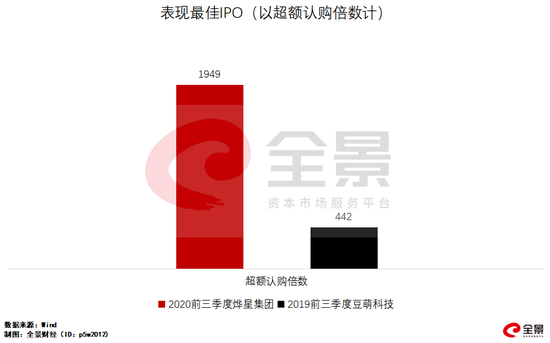 而2019年前三季度超额认购倍数最多的豆萌科技,超购倍数仅442倍,与今年前三季度的超购水平是云泥之别,从一个侧面反映出当前港股市场对新股认购的热情。