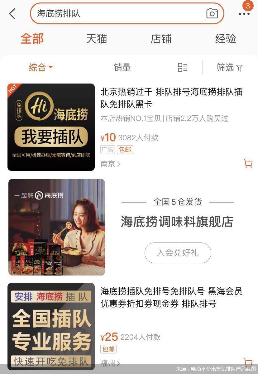 图片来源:电商平台出售免排队产品截图