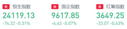 上周五恒生指数跌74.22点或0.31%,报24119.13点,全日成交额达1125.47亿。国企指数跌0.07%,报9617.85点,红筹指数跌0.63%,报3649.25点。