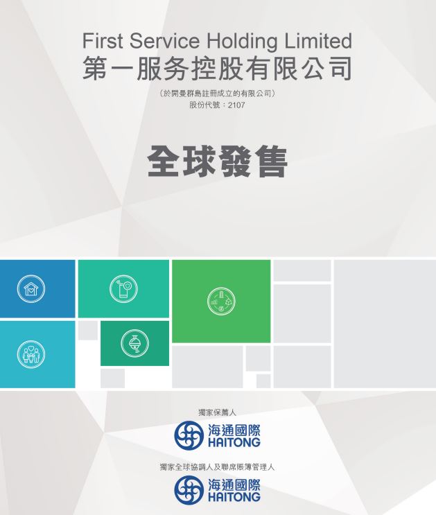 第一服务控股(02107)于2020年10月12日-15日招股,公司拟全球发售2.5亿股,香港公开发售占10%,国际发售占90%,另有15%超额配股权。海通国际为独家保荐人。
