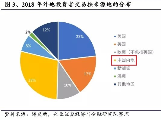 2018年中国内资占香港外地投资者交易金额为28%,虽然取代英国成为第一大外地投资来源,但也只占市场总成交金额的12% 。