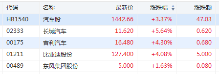 港股汽车股持续走强 恒大汽车涨超8%长城汽车涨近6%
