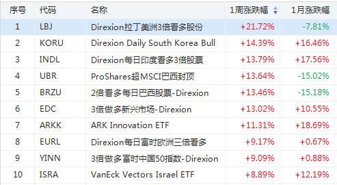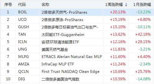 1. 上周美股ETF涨幅榜