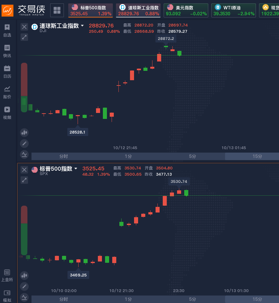 北京时间周一美盘时段,标普500指数涨超1%,纳斯达克指数涨超2%,因白宫新闻秘书称刺激法案仍有希望,美国财长努钦在继续与民主党人进行谈判,市场情绪偏向乐观。