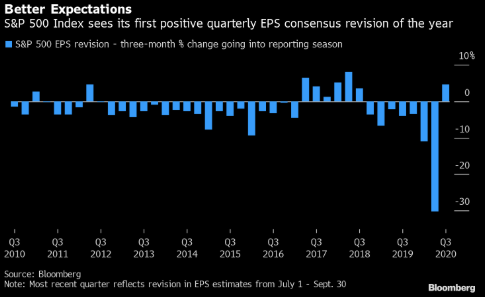 尽管美国还没有实施额外的财政刺激措施,并且该国部分地区新冠病例在9月环比大增,但分析师还是上调了盈利预期。