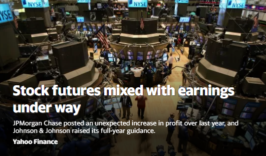 摩根大通和花旗周二拉开第三季财报季的帷幕。高盛、美国银行、富国银行和摩根士丹利本周稍晚将公布业绩。其他公布业绩的蓝筹还有强生、联合健康、美国铝业、联合航空、台积电等。