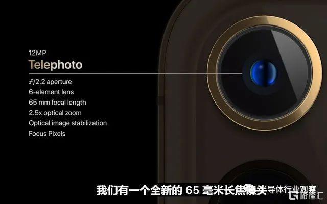 比如影像模组,iPhone 12 Pro配备了新的七元素镜头广角相机,具有ƒ/ 1.6的光圈,可将照片和视频的弱光性能提高27%;具有120度超广角镜头以及52mm焦距长焦相机,使光学变焦范围达到4倍。在iPhone 12 Pro Max上,传感器尺寸较 iPhone 12 Pro增大了 47%,单位像素面积为1.7μm,暗光拍摄性能提升了 87%。长焦焦距达到了 65mm,三摄能提供最高 5 倍的光学变焦。
