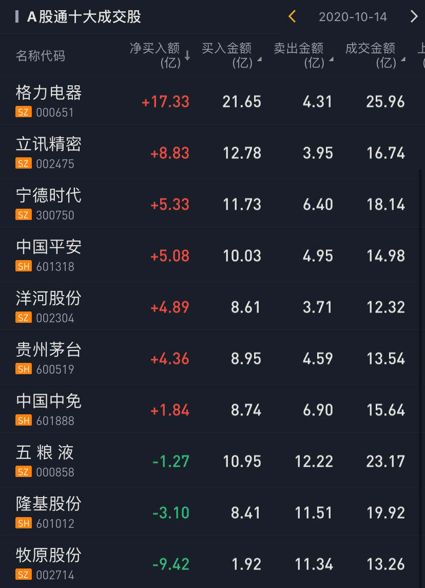 北上资金今日净买入格力电器17.33亿元,净买入立讯精密8.83亿元,净买入宁德时代5.33亿元,净买入中国平安5.08亿元。