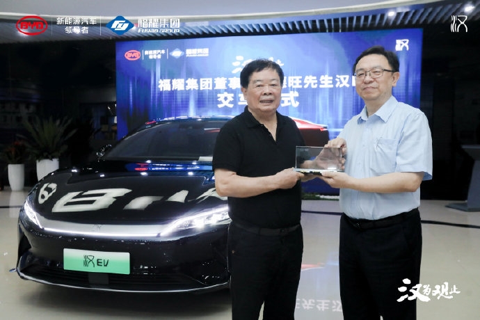 来源:网络,图为王传福交付汉给予福耀董事长曹德旺