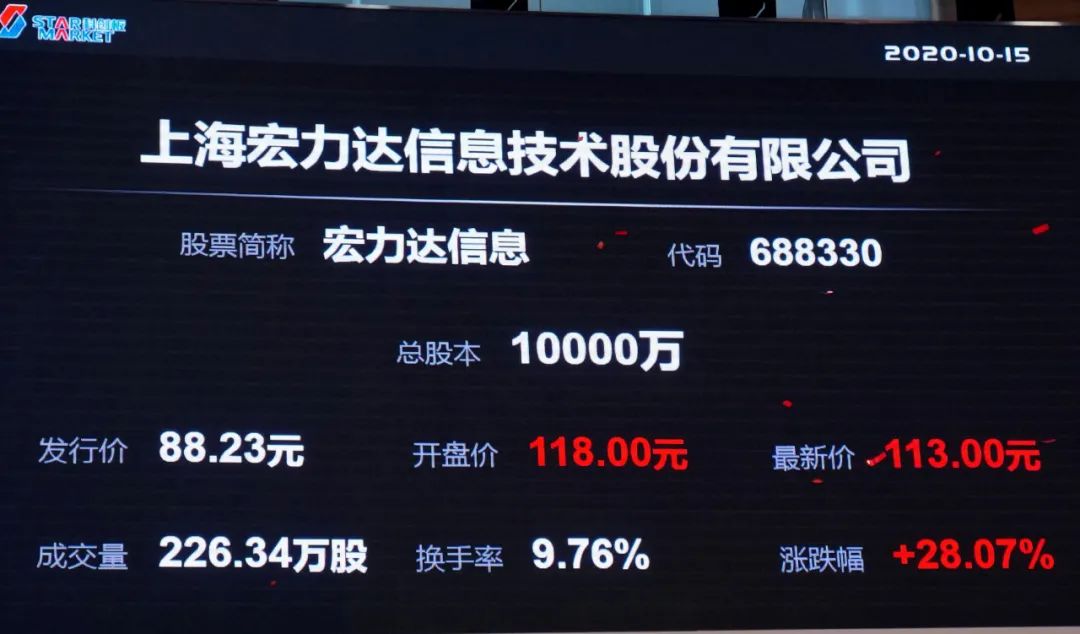 上海宏力达信息技术股份有限公司(证券代码:688330,简称:“宏力达”)今日在科创板上市。