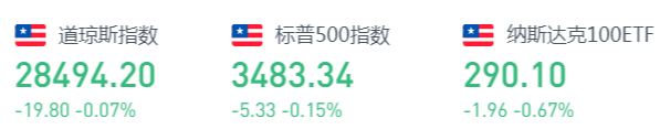 周四道指跌19.80点,或0.07%,报28494.20点;纳指跌54.86点,或0.47%,报11713.87点;标普500指数跌5.33点,或0.15%,报3483.34点。