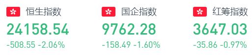 周四恒生指数大跌2.06%,报24158.54点;国企指数跌1.60%,红筹指数跌0.97%。