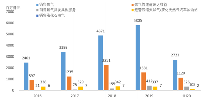 2020 年上半年,燃气管道建设和客户接驳业务以及销售燃气具等增值业务保持增长。