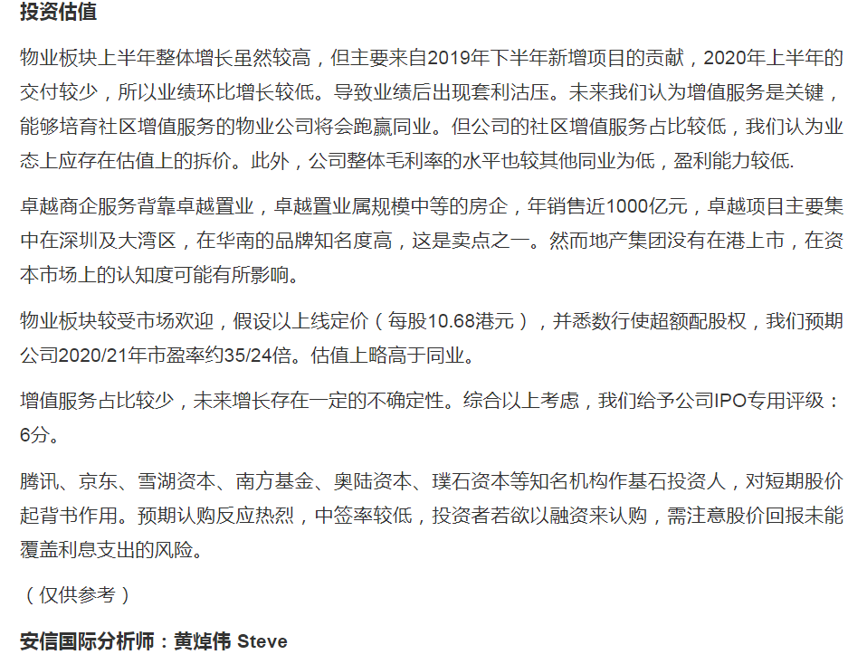 除卓越商企之外,世茂服务、合景悠活等物业公司也通过了港交所聆讯,即将启动招股程序。其中合景悠活料下周一招股,入场费约8212港元,引入高瓴等8名基石投资者,涉资1.2亿美元(约9.36亿港元),更多新股消息可关注华盛通新股中心。