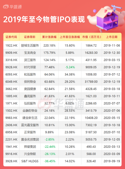 其中首日能吃上肉的就有16家,从上市以来较发行价涨幅超过50%的物业管理公司有7家。