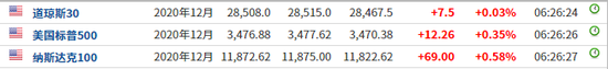 截至发稿,道指期货涨7.5点或0.03%,报28508点;标普500指数期货涨12.26点或0.35%,报3476.88点;纳斯达克100指数期货涨69点或0.58%,报11872.62点。