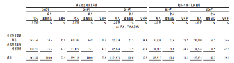 而从毛利率来看,2019年合景悠活的住宅物业管理服务毛利率为34.4%,低于商业物业管理运营服务的43.4%,总体的业务毛利率为37.3%。