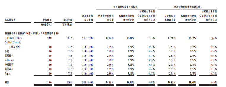 根据招股书显示,已有Hillhouse Funds、Orchid China及LMA SPC、嘉实基金、雪湖资本、Valliance、中国联塑、奥陆资本及Aspex按合景悠活发售价认购以合计1.2亿美元可购买的若干数目发售股份。按发行价下限计算,基石认购比例占国际发售38.5%。