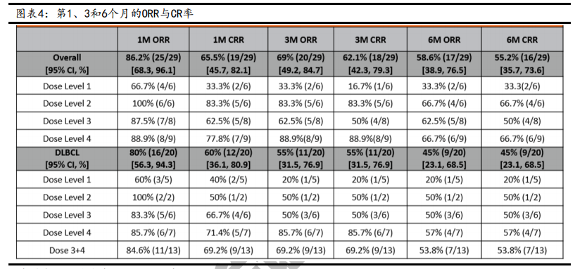 此前ASH会议上,药明巨诺公布了该药物的临床I期试验结果,在这项纳入了32名患者的临床研究中,最终有29例可评估疗效并随访了至少6个月。这些患者接受了递增的剂量水平(DL)单次输注JWCAR029,以评估JWCAR029的安全性和有效性。