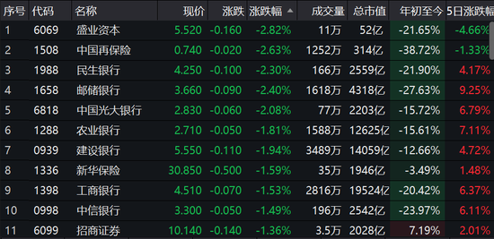 银行股普遍回软:邮储、光大跌超2% 建行、工行跌超1%